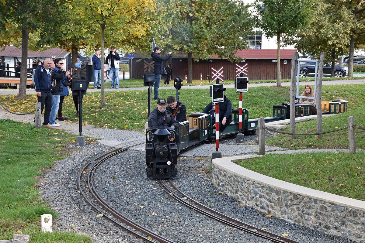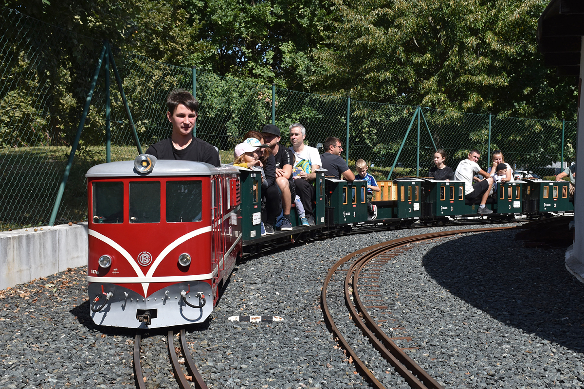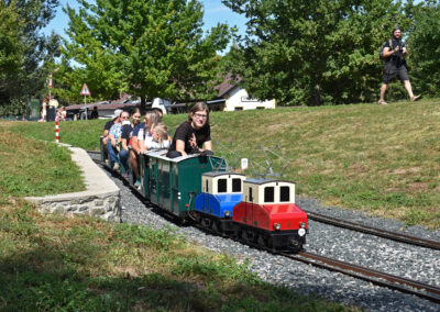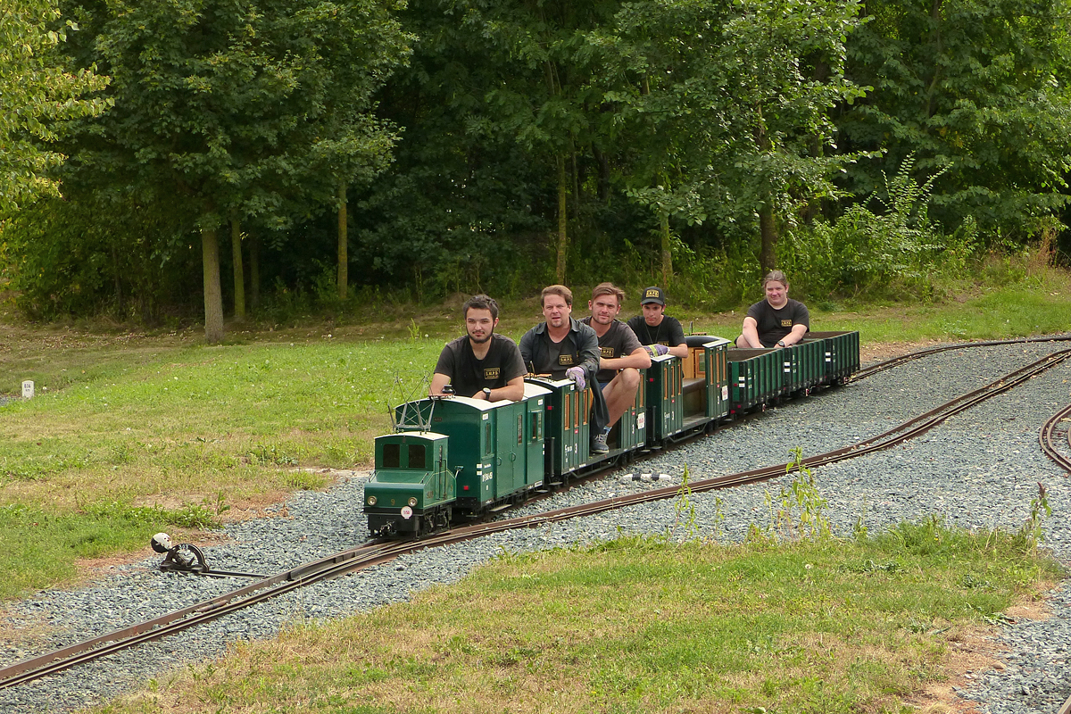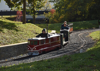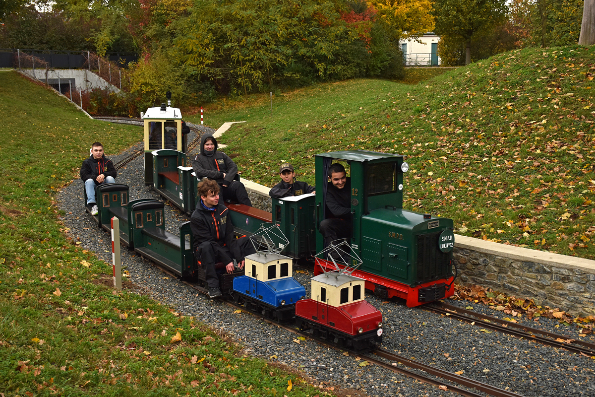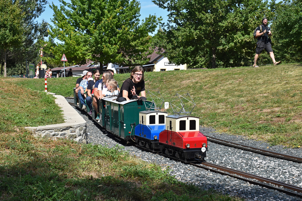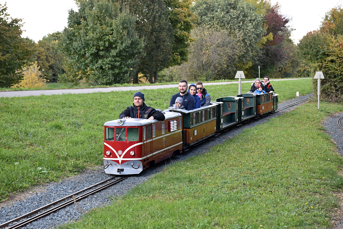 Samozřejmě je ale nutné i to nejdůležitější – vozit platící cestující okolo parku. Toho se zhostí tradičně velké lokomotivy 12 a 41, dopoledne doplněné o bateriové dvojče, odpoledne o TU ev.č. 42. Za jejich obslužnými pákami a kontroléry se během dne objevili Staňa starší, Honza P., Martin D., Tim, Martin S. a Kuba Š.