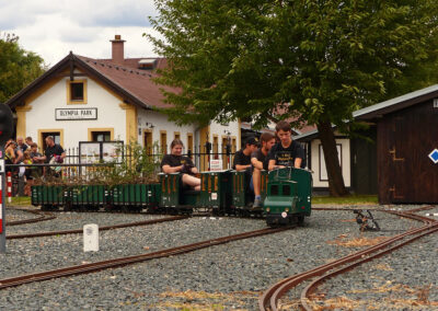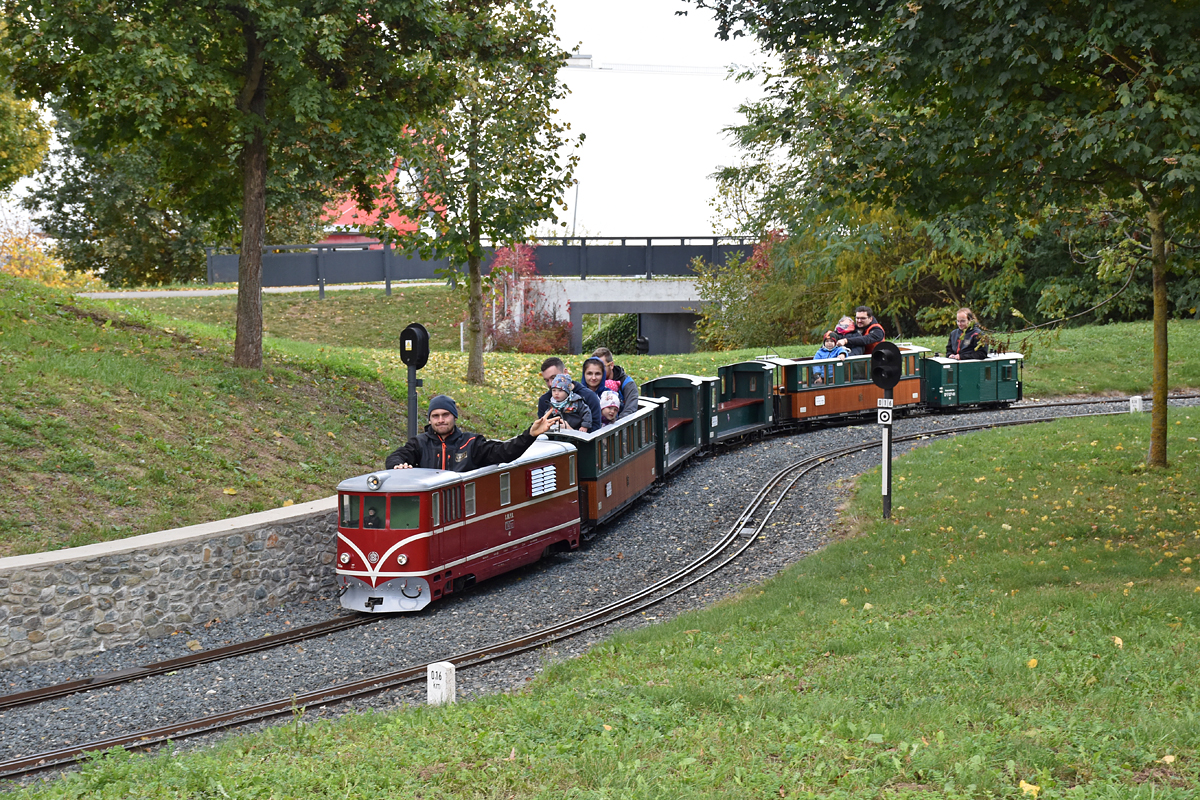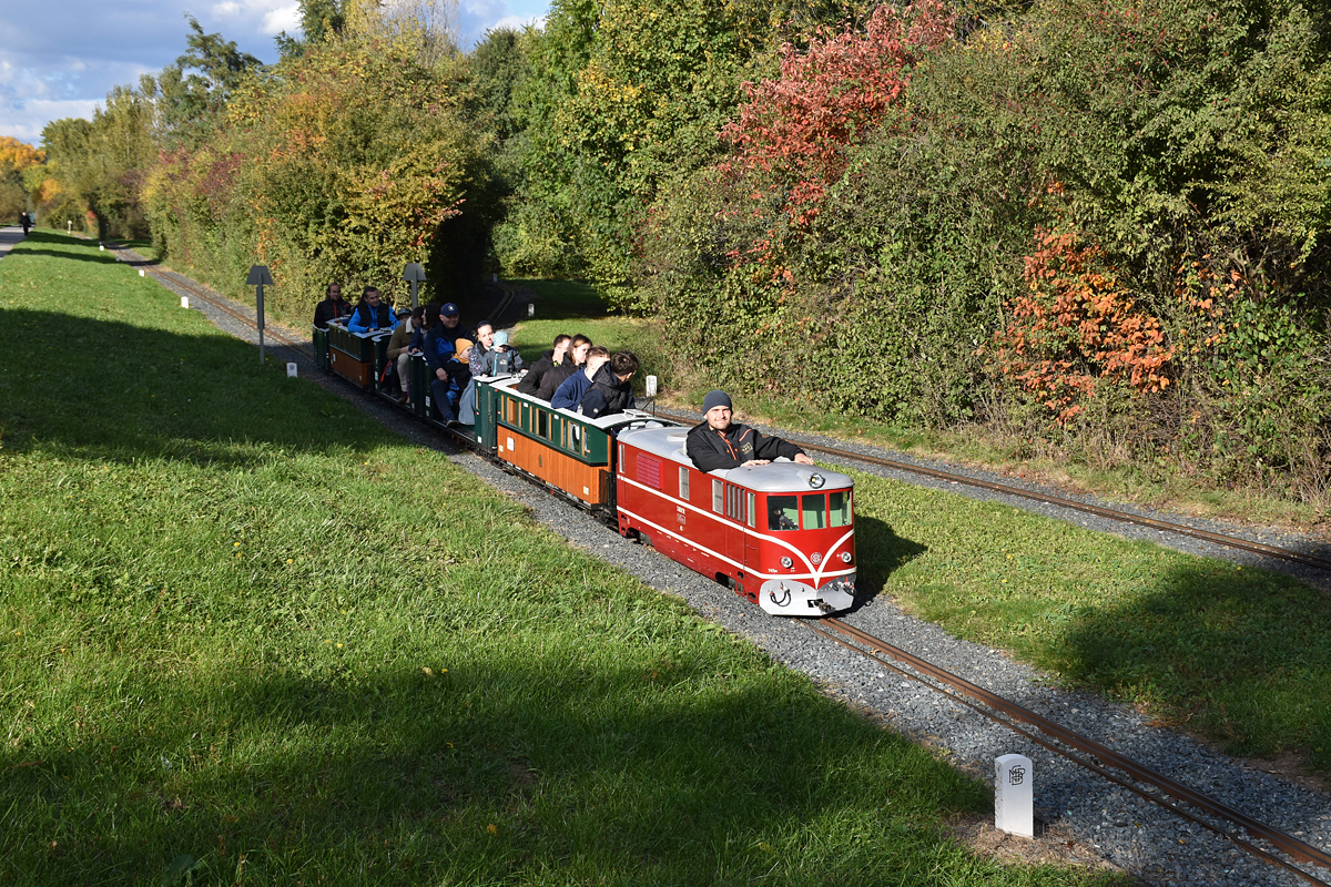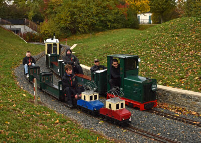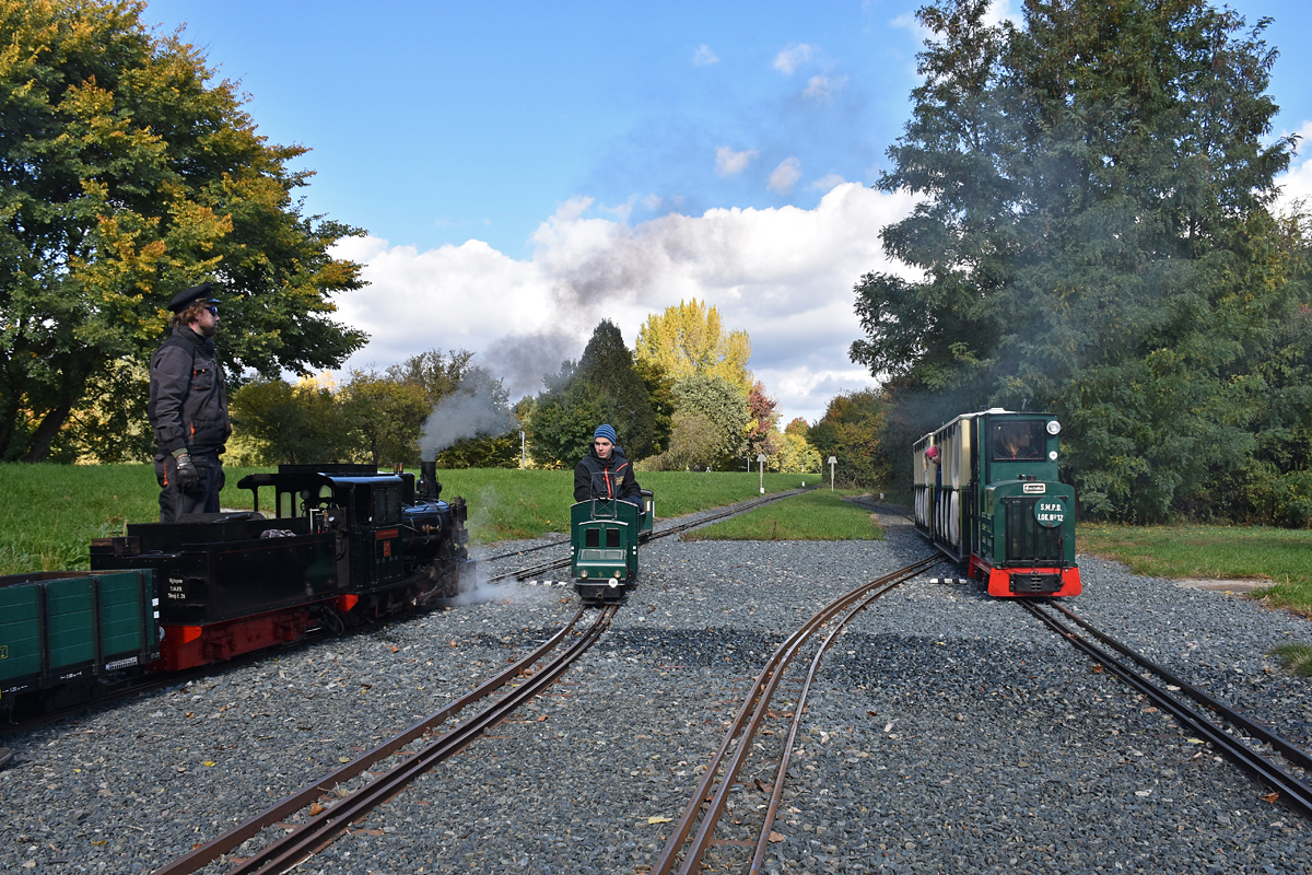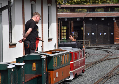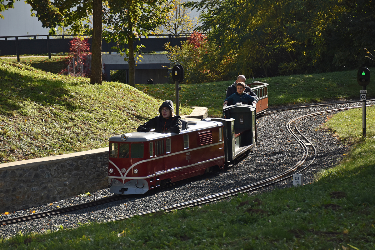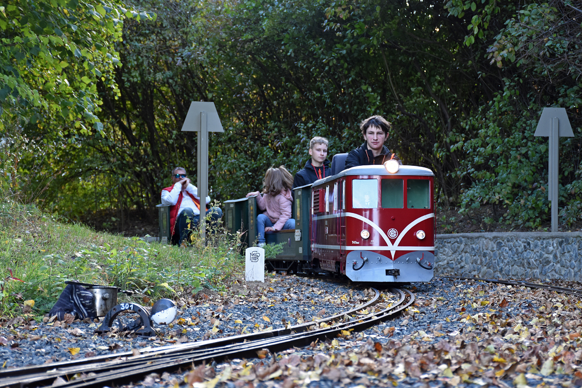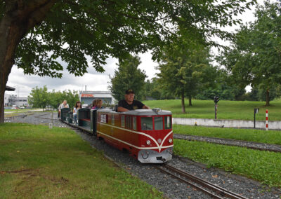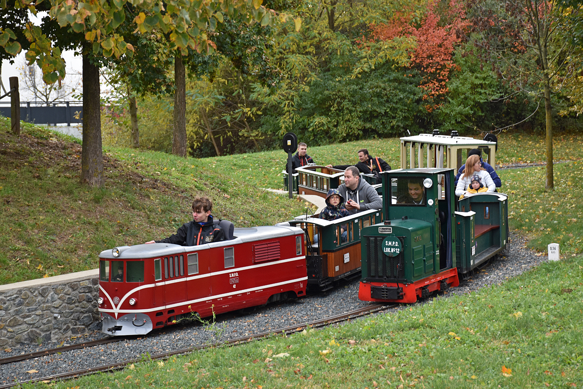 Samozřejmě je ale nutné i to nejdůležitější – vozit platící cestující okolo parku. Toho se zhostí tradičně velké lokomotivy 12 a 41, dopoledne doplněné o bateriové dvojče, odpoledne o TU ev.č. 42. Za jejich obslužnými pákami a kontroléry se během dne objevili Staňa starší, Honza P., Martin D., Tim, Martin S. a Kuba Š.