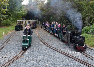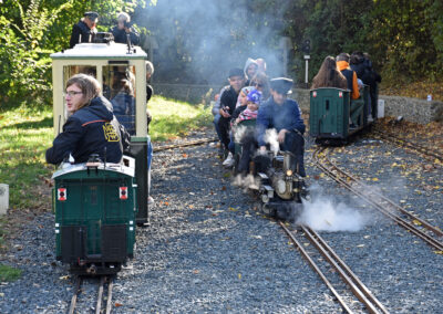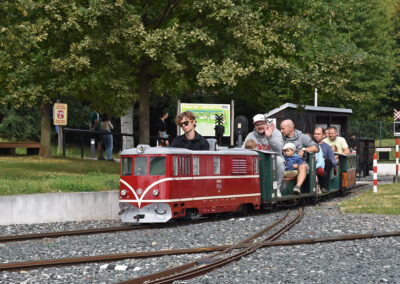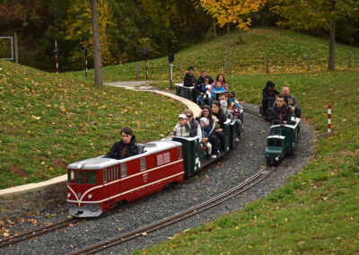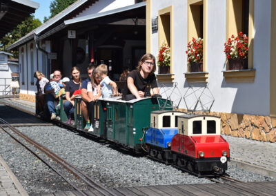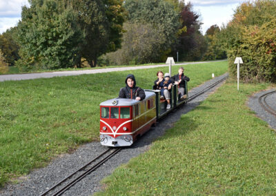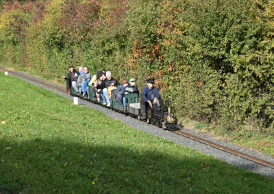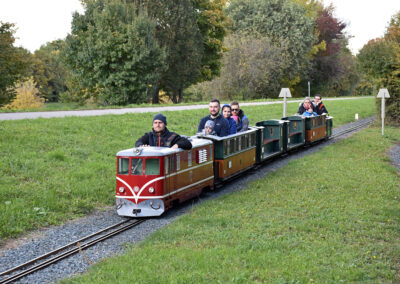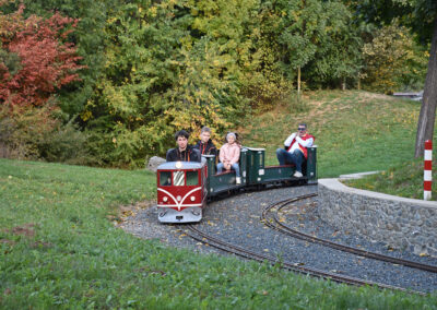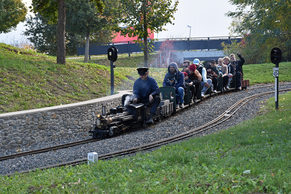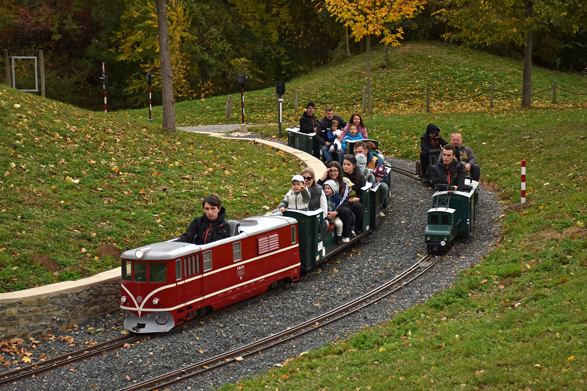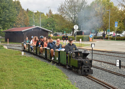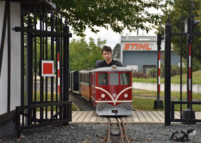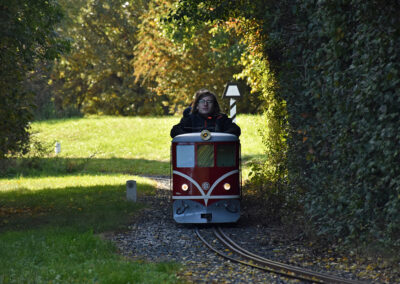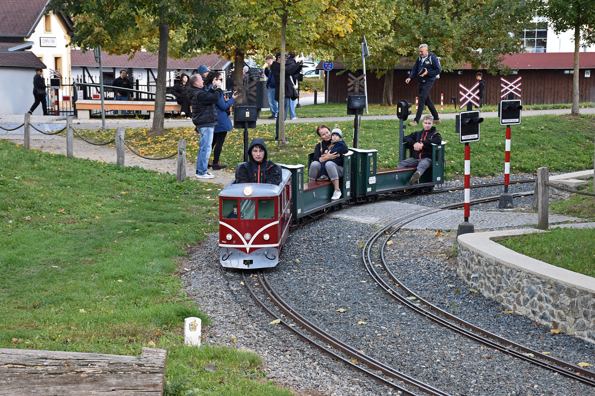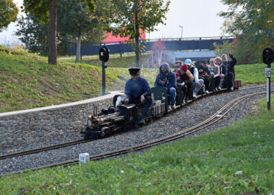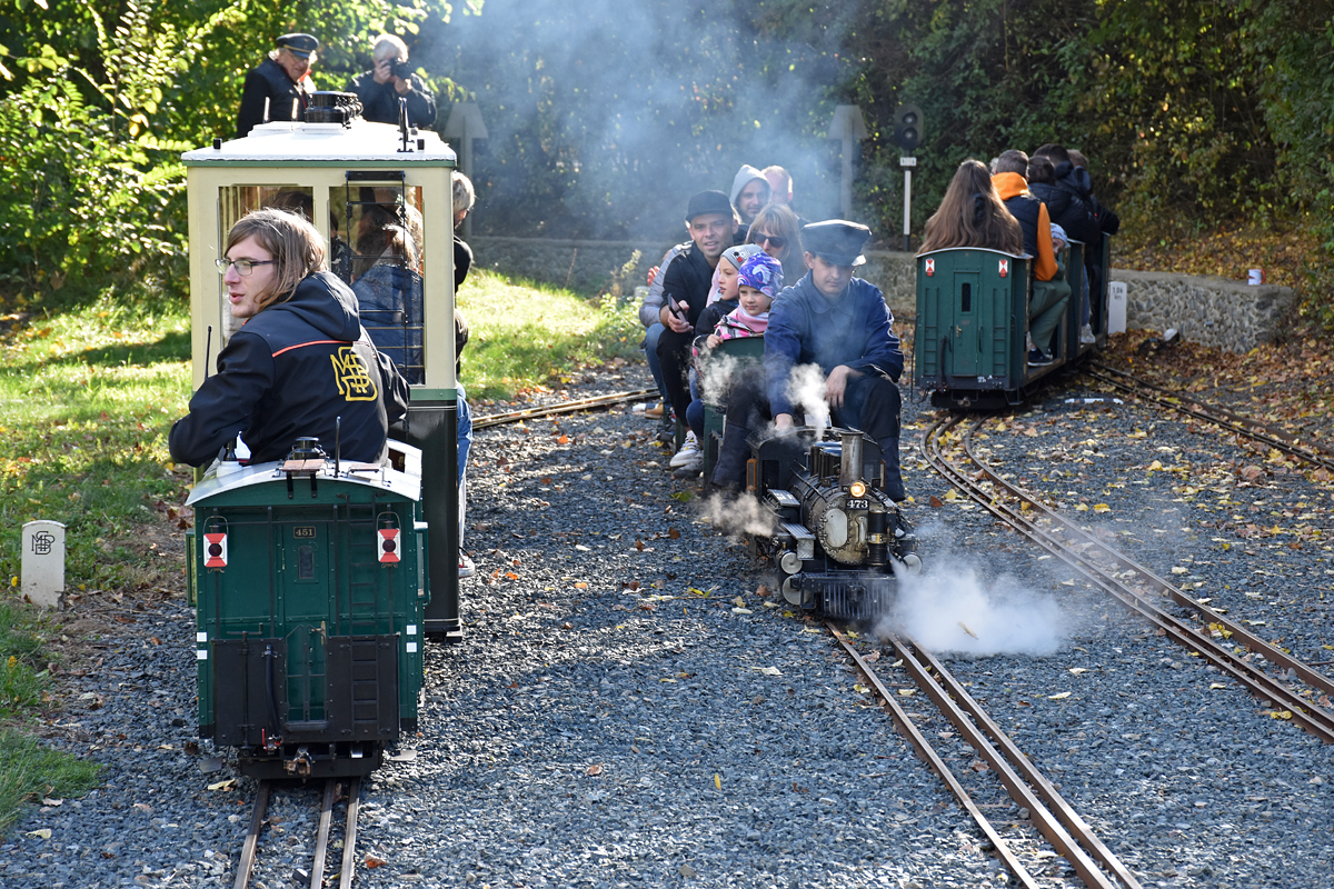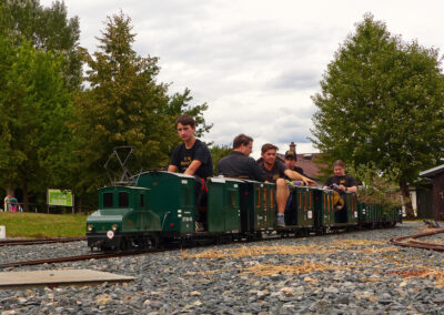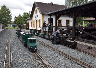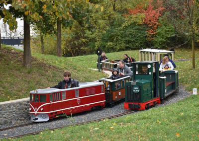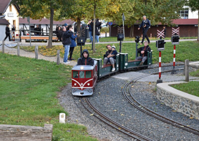 Samozřejmě je ale nutné i to nejdůležitější – vozit platící cestující okolo parku. Toho se zhostí tradičně velké lokomotivy 12 a 41, dopoledne doplněné o bateriové dvojče, odpoledne o TU ev.č. 42. Za jejich obslužnými pákami a kontroléry se během dne objevili Staňa starší, Honza P., Martin D., Tim, Martin S. a Kuba Š.