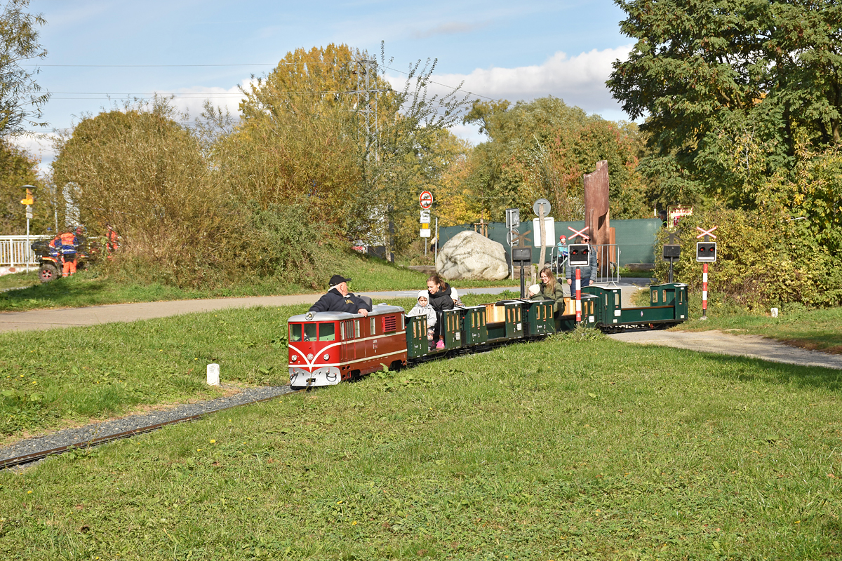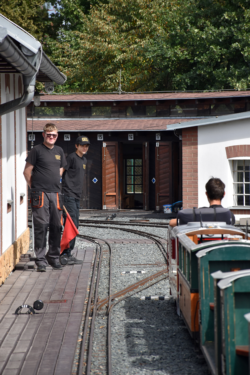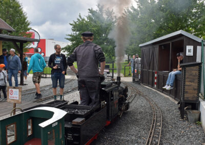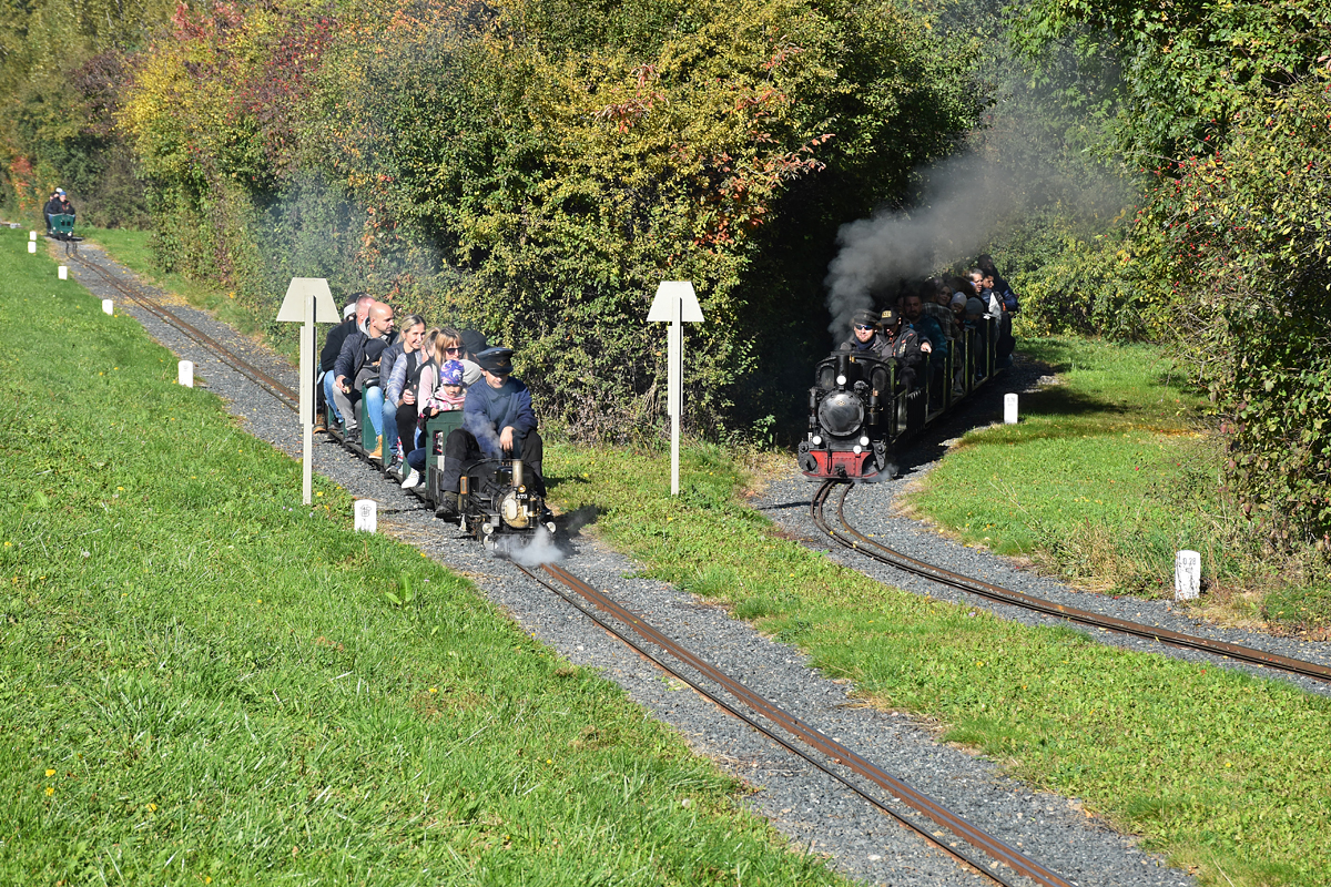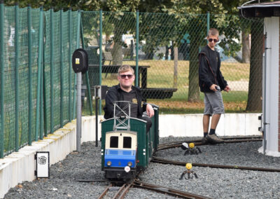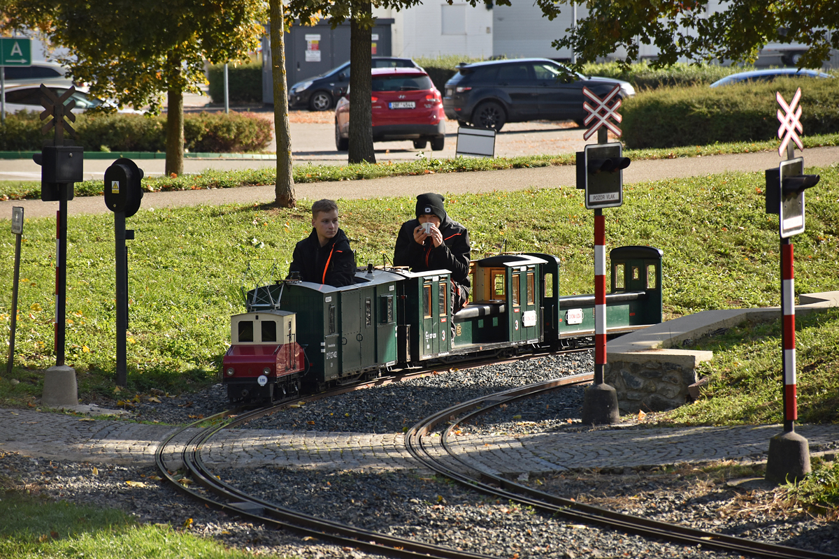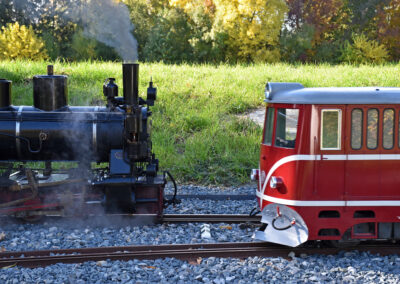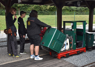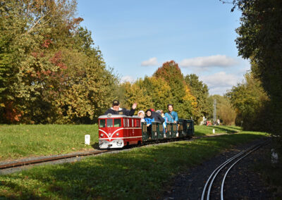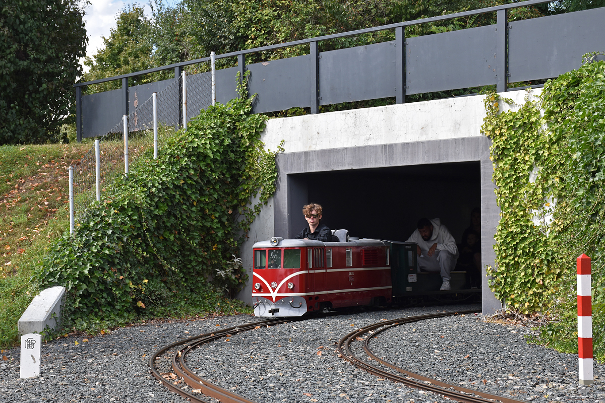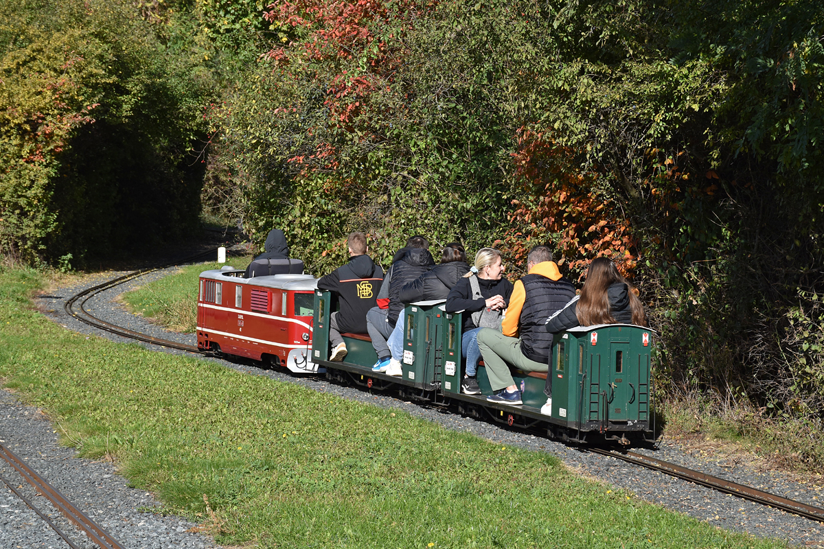 Samozřejmě je ale nutné i to nejdůležitější – vozit platící cestující okolo parku. Toho se zhostí tradičně velké lokomotivy 12 a 41, dopoledne doplněné o bateriové dvojče, odpoledne o TU ev.č. 42. Za jejich obslužnými pákami a kontroléry se během dne objevili Staňa starší, Honza P., Martin D., Tim, Martin S. a Kuba Š.