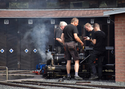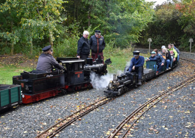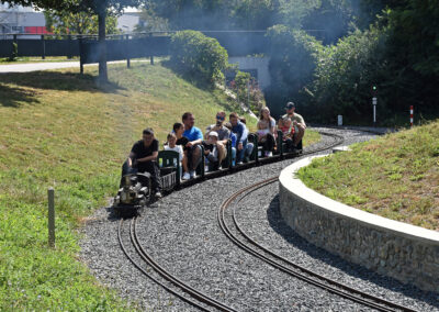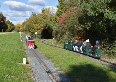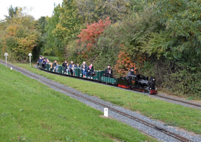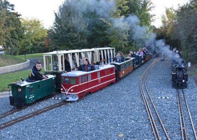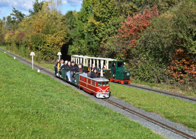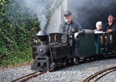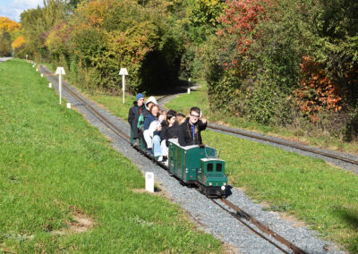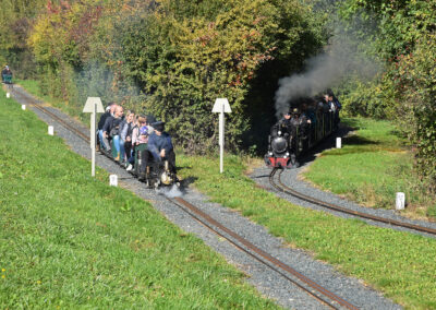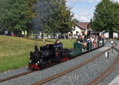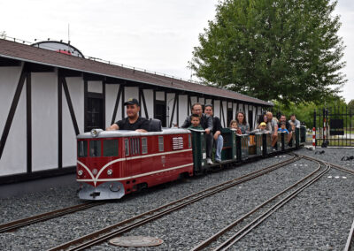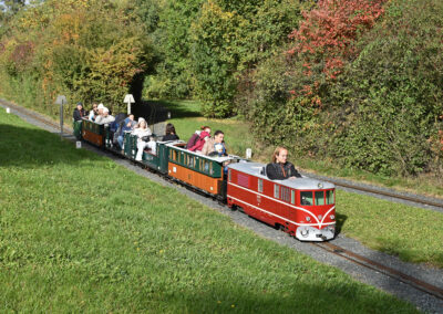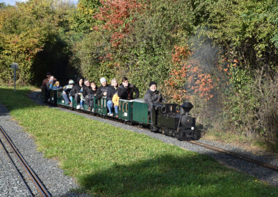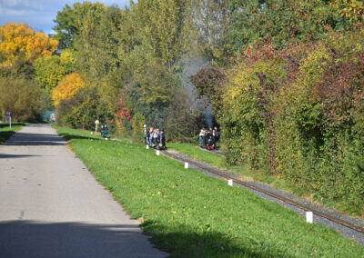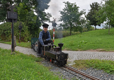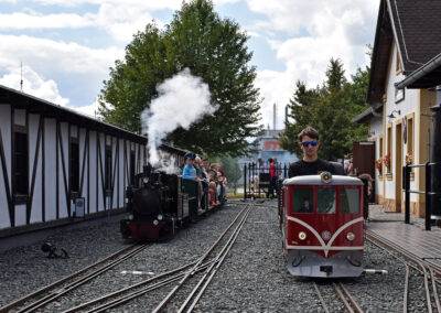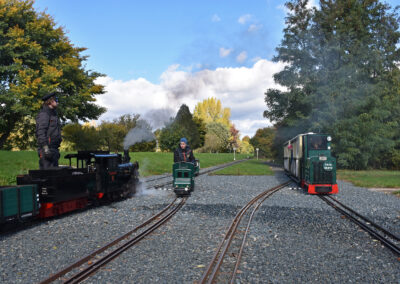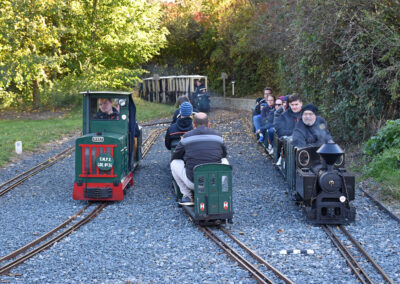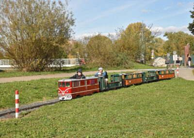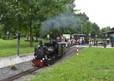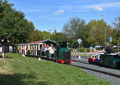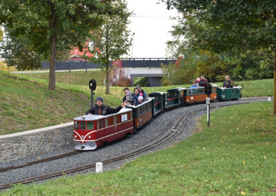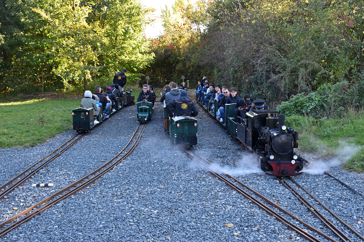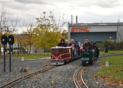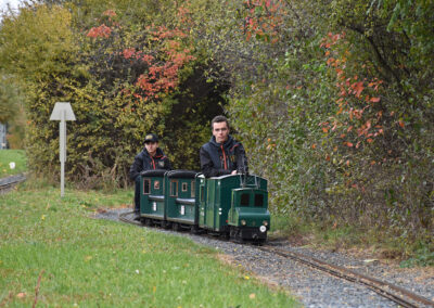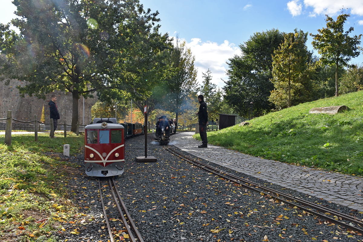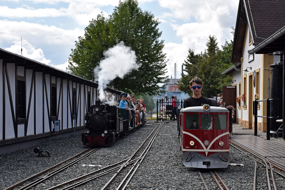 Samozřejmě je ale nutné i to nejdůležitější – vozit platící cestující okolo parku. Toho se zhostí tradičně velké lokomotivy 12 a 41, dopoledne doplněné o bateriové dvojče, odpoledne o TU ev.č. 42. Za jejich obslužnými pákami a kontroléry se během dne objevili Staňa starší, Honza P., Martin D., Tim, Martin S. a Kuba Š.