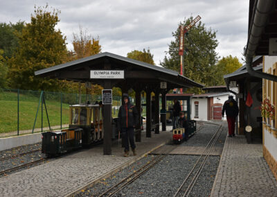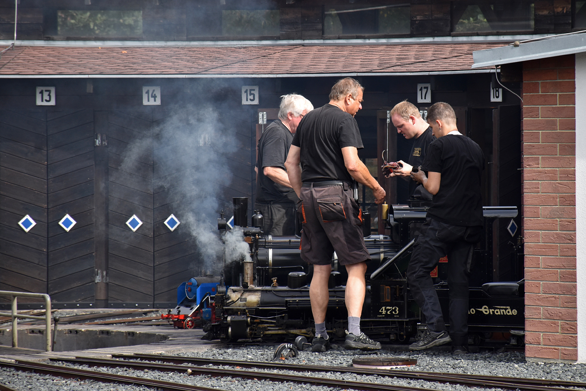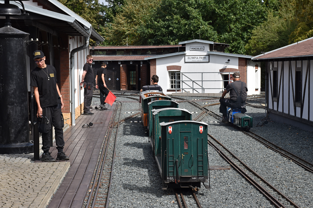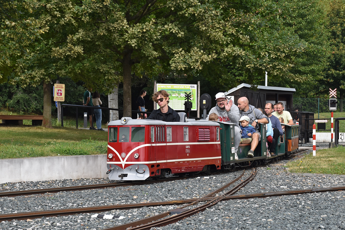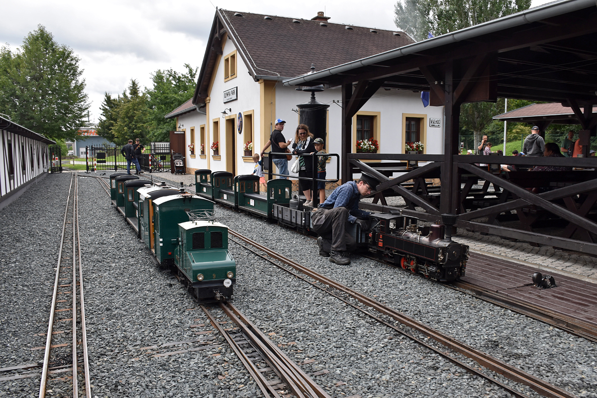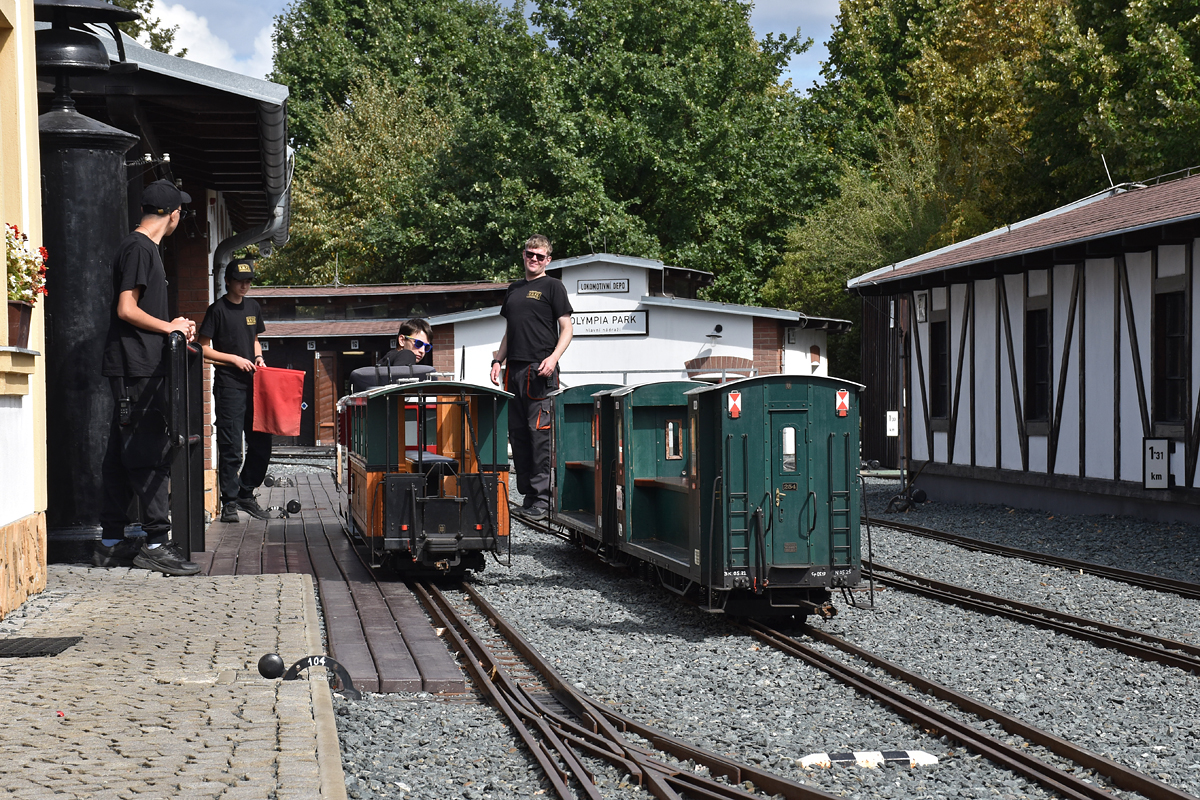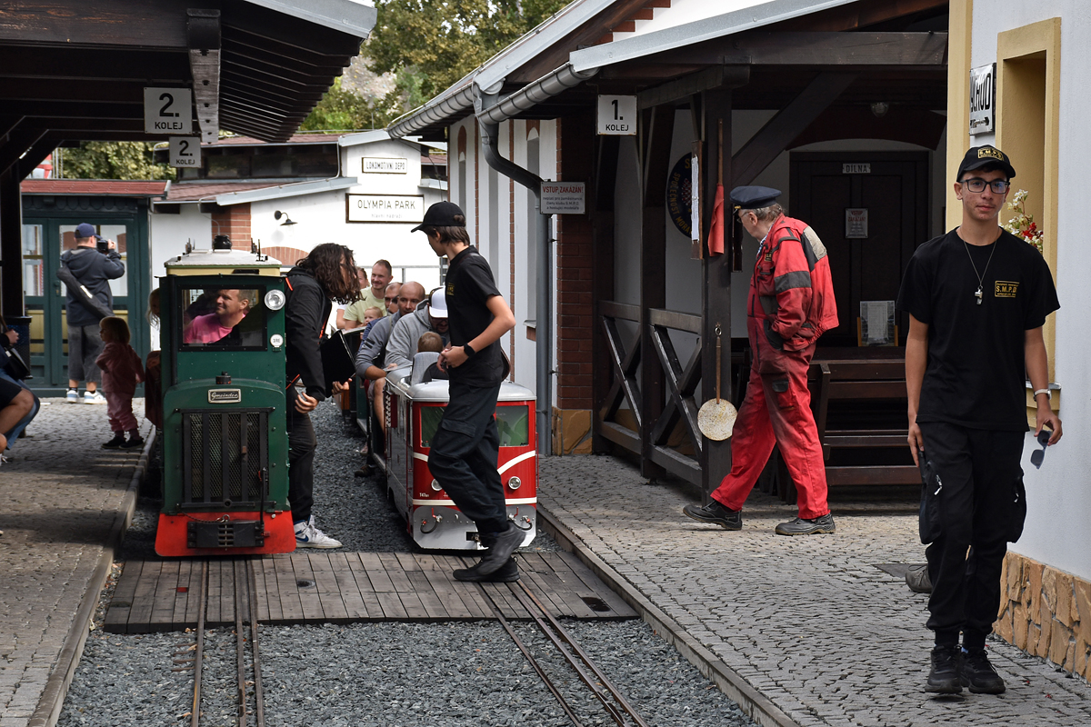 Běžný provoz pro cestující zajišťují tři soupravy. S bateriovým dvojčetem AEG jezdí většinu dne Tommy, později odpoledne ho vystřídá Dan Š., který dopoledne dokončoval zácvik na červená TU ev.č. 41 a 42, a po obědě dokonce splnil i závěrečnou zkoušku v podobě zkušebního okruhu na čas, výkladu o technických funkcích lokomotivy a dalších věcí. S lokotraktorem ev.č. 24 vozí dopoledne cestující Kuba Š, kteréhož poobědová závěrečná zkouška se zadrhne na zmatení z konstrukce stroje a stane se neúspěšnou. “Dvacetčtyřku” si pak přeberou napůl Viktor s Filipem a s těžkou soupravou testují limity chlazení hydraulického oleje, které je stále mírně na hraně. Třetím vlakem je pak po celý den červené TU ev.č. 41, v jehož pohodlné sedačce si hoví Štěpán J. Po nádraží se navíc batolí i parní lokomotiva ev.č. 7, jejíž funkce a spolehlivost před Parní Olympií a po provedené opravě kotle testuje Kuba D. Výsledky jsou dobré, lokomotiva je schopná provozu bez závad.