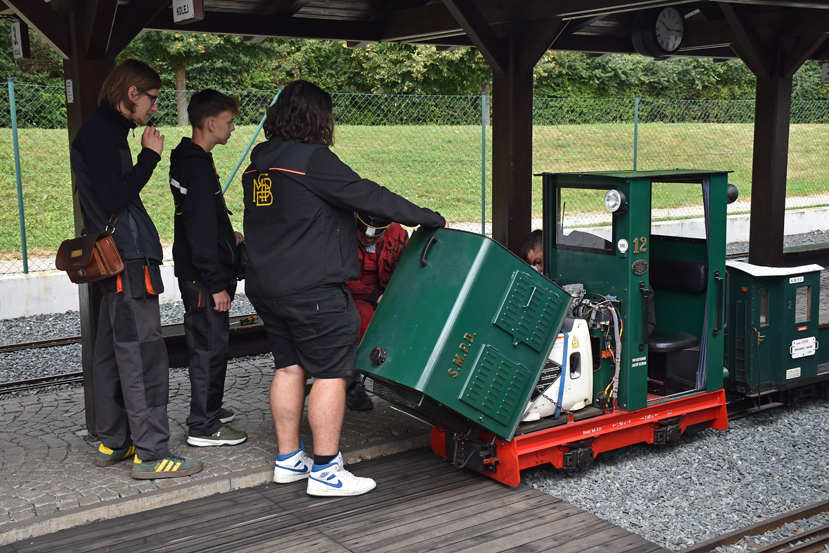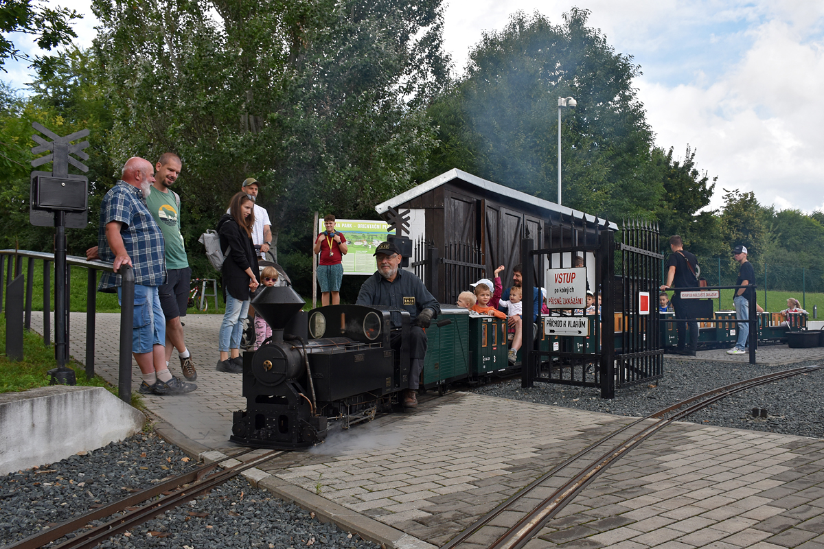 Druhá srpnová neděle pro nás znamenala další posunutí ve školení nových kolegů, již od samého rána probíhal zácvik Tommyho na lokomotivu TU, kterého tak po roce aktivního ježdění na lokomotivách AEG čekal posun na další level našich strojů. Museli jsme se také vypořádat s absencí dvou členů, kteří tento ten pro zdravotní problémy museli vynechat. Naštěstí se podařilo sehnat náhradu, konkrétně Vavřince, který nám vypomohl neobsazené směny obsadit. V zácviku během dopoledne pokračoval náš nový člen Tom, který si svou pracovitostí zasloužil zácvik na AEG. Filip mezitím připravil výborný oběd, kuřecí směs s excelentními bramboráčky, tento typ obědu naši členové vždy zajisté ocení. Odpoledne měli strojvedoucí hnacích vozidel zpestření ve formě střídaných přestávek, což přináší další ozvláštnění našeho provozu, a když se nás sejde dostatek, i delší pauzu mezi jednotlivými okruhy, než 4–5 minut.