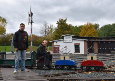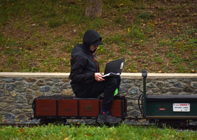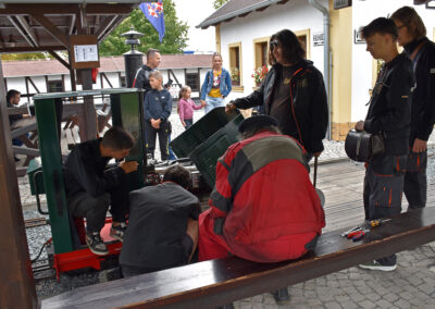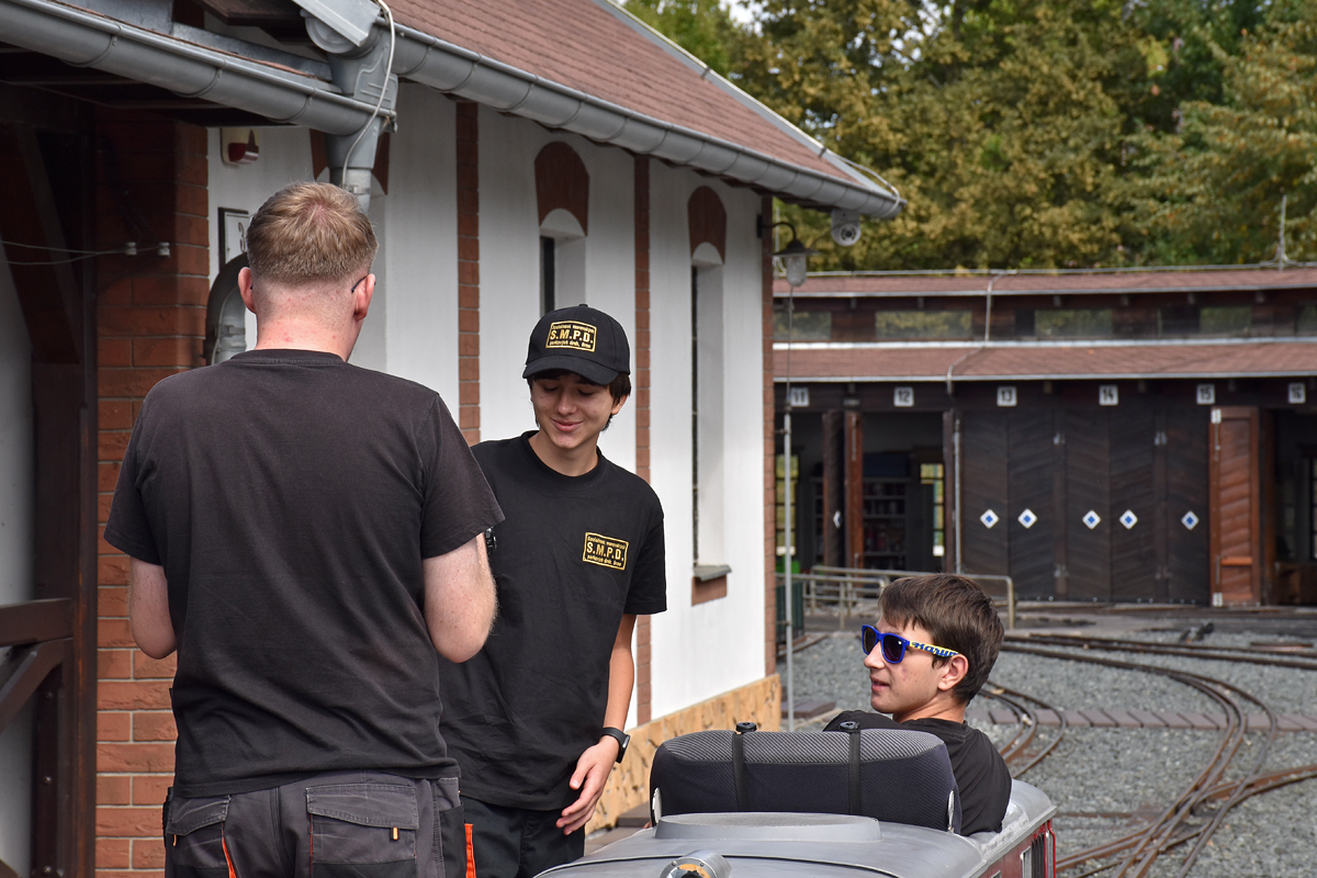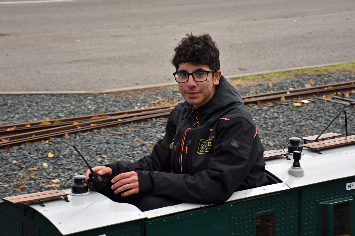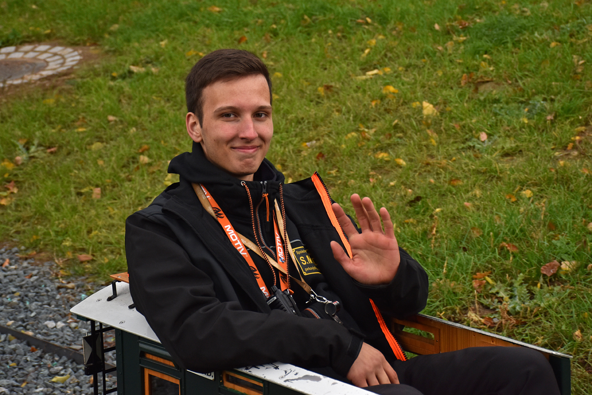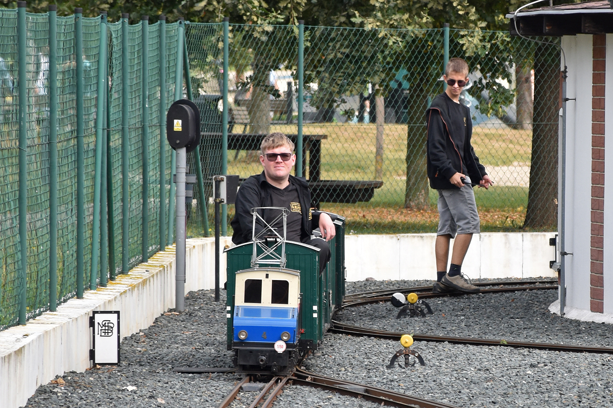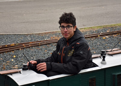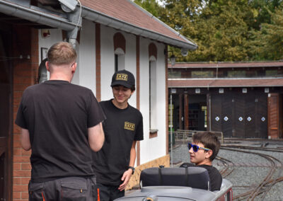 Dále jsme zahájili zácvik nových pokladníků. Jako první si přípravu pokladny a rovnou dopolední nápor návštěvníků vyzkoušel Martin D. Mladý Dan L. byl ráno poprvé zasvěcen do toho, co obnáší pozice Vrchní posunovač, který musí vymyslet, jak co nejefektivněji s pomocí dostupných lokomotiv poskládat soupravy do předepsaného složení. Tomáš H. si zopakoval činnost ranního i večerního Vozmistra, a naznali jsme, že ji příště může už vykonávat samostatně. V zácviku na lokomotivy TU pak pokračoval nadšený fotograf železnice Tim, který celé odpoledne jezdil pod vedením Kuby Š., a vyzkoušeli si i všelijaké kejkle, jako je sunutý vlaky s vagóny před lokomotivou. Patrik se pro změnu v dopoledních hodinách nadále zacvičoval na bateriové AEG, tentokrát už formou jízd s cestujícími, byť stále pod dohledem instruktora. A Martin S. se tvářil spokojeně.