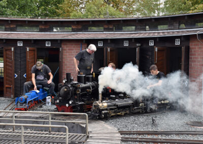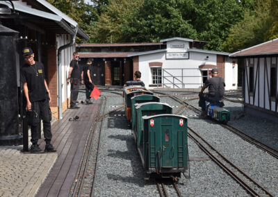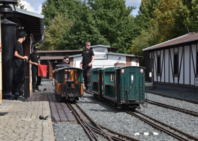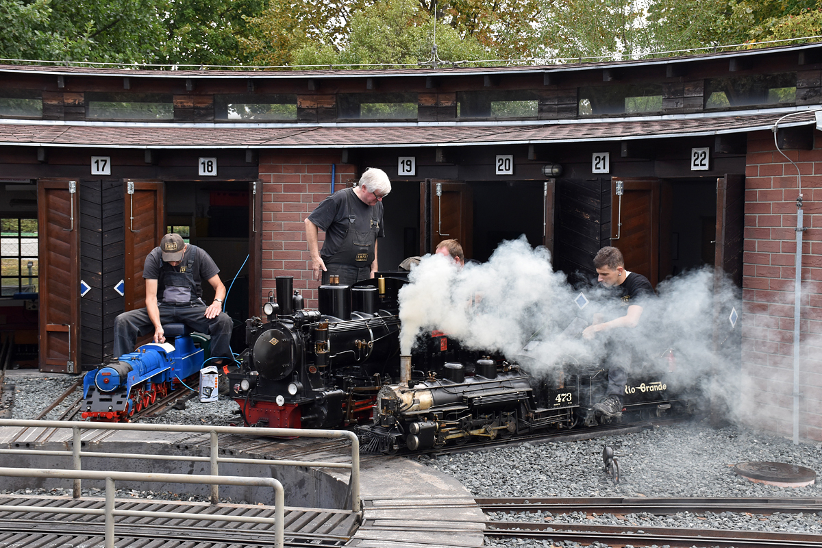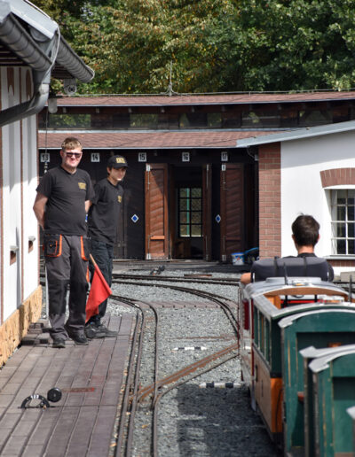 Krátce po 8. hodině ranní otevírají naši nedočkaví členové branku a hrnou se do prostor Hlavního nádraží. Někteří připravovat soupravy v roli posunovače, či vozmistra, jiní připravit mašiny, v roli strojvedoucích. A že jich dneska v provozu bude potřeba spousta. Taky přichází naši dva úplně noví členové – Viktor P. a Štěpán M. Ti podstoupí úvodní školení od našich školitelů, aby mohli lépe vhlédnout do problematiky provozu naší parkové dráhy. Dopoledne je bude učit Martin D., a protože to bude jeho úplně první školení, na správnost a úplnost podávané látky bude dohlížet vedoucí odboru vzdělávání Filip. Neméně podstatné bude také školení našich Jakubů (Š. a Š.) na lokotraktor 24, který v loňském roce prošel generální opravou. Oba chlapci svezli úspěšně své první cestující. Učení není nikdy dost, rozšíříme i znalosti našich nejmladších parních strojvedoucích – Stani Š. a Tomáše F. – o znalosti a dovednosti s „Amerikou“ – ev. č. 28. Druhý jmenovaný odpoledne již sveze cestující, Staňa odpoledne odbavuje a vypravuje vlaky ze 14. koleje; na jeho prvenství s cestujícími za kotlem 28 si o den počká. No a abych nezapomněl, ještě jeden zácvik se koná. Pavel K. předá prvotní znalosti Bonifácovi J. na bateriové lokomotivy AEG. To by bylo ze soudku „tohle jsme stihli taky“. A teď k pravidelnému provozu, který byl pro cestující přeci jen podstatnější – na ten si mohli, takříkajíc, sáhnout.