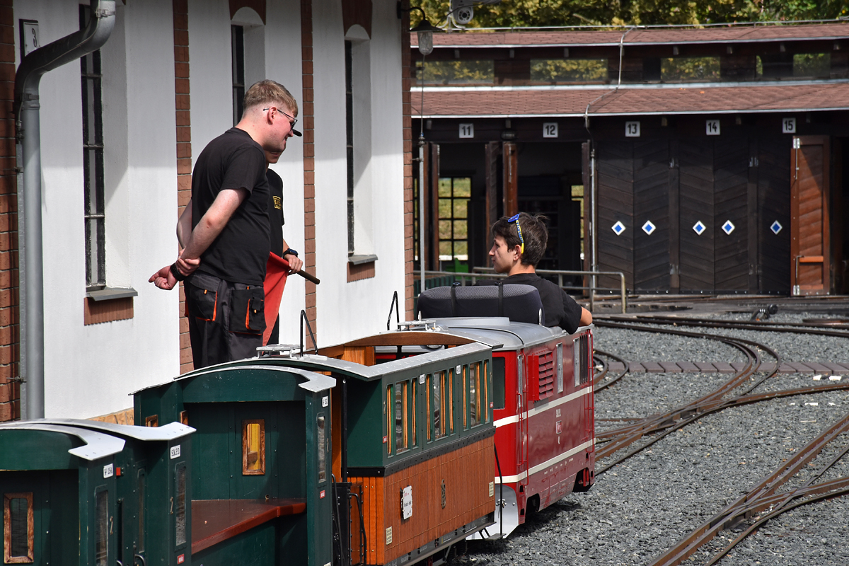 Dnešní parní provozní den se nesl ve znamení 4 parních vlaků pro cestující (ačkoliv na jednom z nich se provizorně opravená lokomotiva Ponava po polední pauze rozhodla protestovat, a šla na opravu do rotundy, kde si bohužel pobude několik dalších týdnů). Dopoledne bylo kromě běžného a parního provozu také zaměřeno na zácviky, kdy Patrik usednul za ovládací pult lokomotivy 9, a Pavel jezdil s cestujícími podle jízdního řádu na lokotraktoru 24. Vzhledem k výjezdu parních lokomotiv okolo 11 hodiny je podle jízdního řádu jeden motorový vlak odstaven a tak mohli Jakub a Pavel úspěšně složit teoretickou zkoušku společně, týkající se právě lokotraktoru 24. Na oběd jsme měli výborné pečené kuřecí stehno, a po tak dobrém obědě jsme se s ještě větší chutí vrhli do odpoledního provozu. Tady se, kromě proplétající se šaliny 107, proplétala i parní cvičná jízda s lokomotivou Křenovice pod vedením Filipa, na kterého dohlížel Kuba. Pavel již jezdil samostatné kilometry s cestujícími, než přijde praktická závěrečná zkouška na lokotraktor. Ostatní prováděli zodpovědnou činnost při zajišťování provozu, dílenské činnosti, nebo údržbu trati, kde např. Jakub natíral „pískáčky“ a Vavřinec se v rámci dílenské činnosti postaral o údržbu výhybek v Hlavním nádraží.