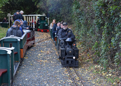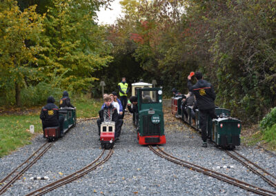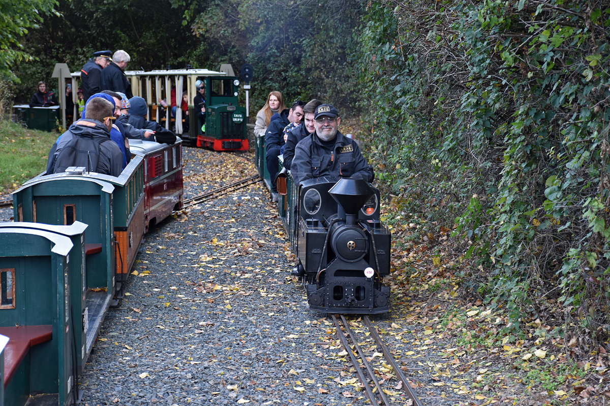 I přes drobné technické komplikace se ale provoz vydařil, převezli jsme vás spousty a v kasičce na dobrovolné jízdné se v součtu objevilo nemalé množství hotovosti, za což Vám moc děkujeme a Vaší přízně si nesmírně vážíme. Je na čase ale soupravy uklidit, uložit naši dráhu k pokračování v zimním spánku a sami se vrhnout na připravený večerní raut, po kterém si pro nás Váva připravil interaktivní hry. A jelikož “Mikulášské” jízdy jsou zároveň i klubovým srazem, pořizují se společné fotky, které můžete shlédnout níže.