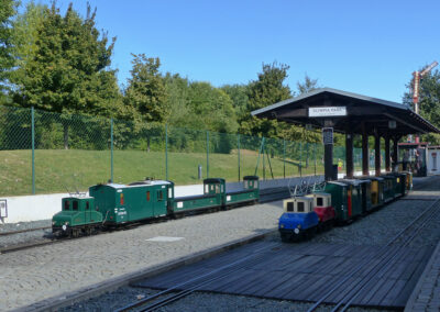 Sobota 21.6. se nesla zejména ve stylu školení a prohlubování dovedností hned 4 nováčků, kteří se během dne prostřídali v pozicích Průvodčí, Občerstvení, nebo třeba Posunovač, a naučili jsme je některé nové teoretické věci, které jistě brzy využijí. I nové nezvyklé duo otec a syn se v provozu rychle osvědčilo. Školicí listy se uspokojivě plní díky obětavé práci hrstky instruktorů, kterým patří poděkování. Kromě školení jsme samozřejmě vypravili vlaky pro cestující, bez kterých by žádný provozní den parkové dráhy neměl ten pravý smysl. Dvojice Martinů, Dan, Štěpán, Vojta a Tommy se prostřídali ve 2 “TUčkách”, lokotraktoru ev.č. 12 a elektrickém dvojčeti lokomotiv AEG. Odpoledne vyjelo i třetí AEG jakožto pracovní vlak pro odvoz ostříhaných větví z keřů, jelikož Viktor P. s Danem Š. se věnovali údržbě dráhy, kdy zkracovali neúnavně rostoucí větve poblíž kolejí. Díky přítomnosti Saši a Evy se jednou zase pořádně uklidilo i v naší klubovně, protože přece jenom – dámy mají pro ten pořádek jakýsi lepší cit.